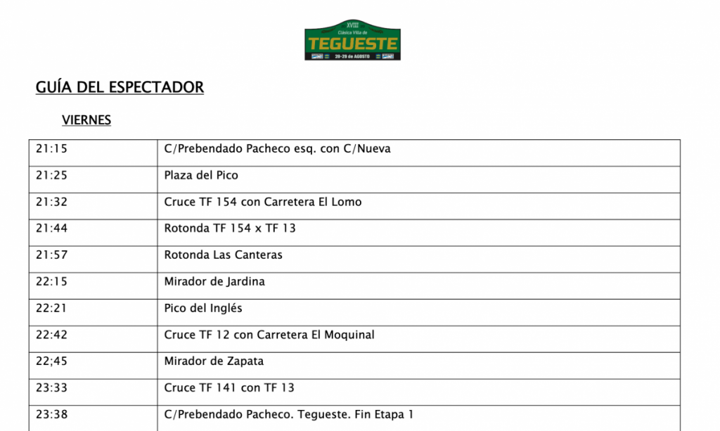 El Tenerife Historic Team publica la Guía del Espectador, con alguna de las mejores ubicaciones y sus respectivos horarios para ver la evolución de los participantes.