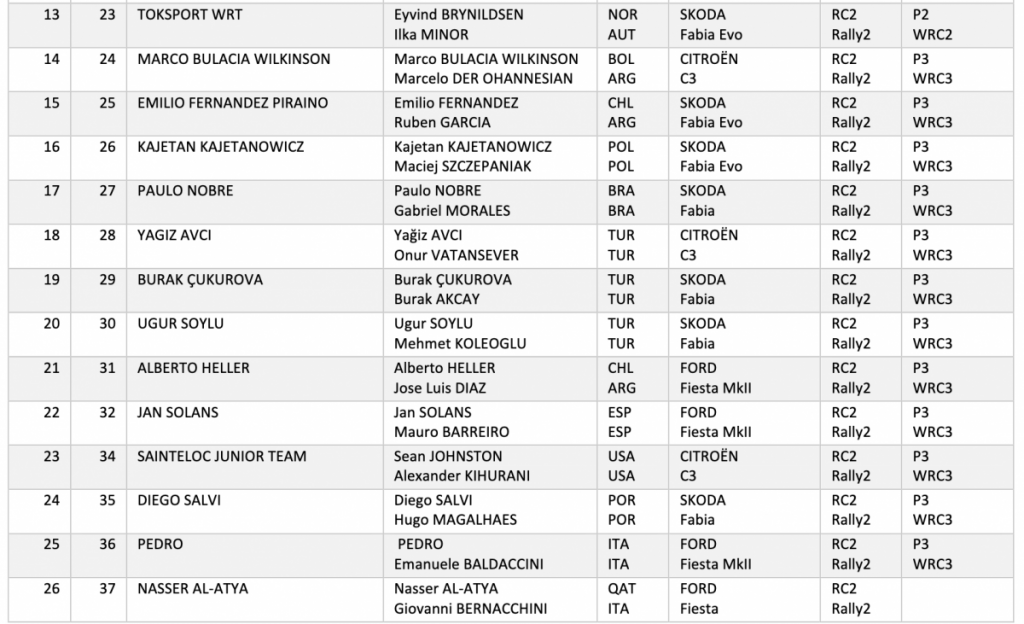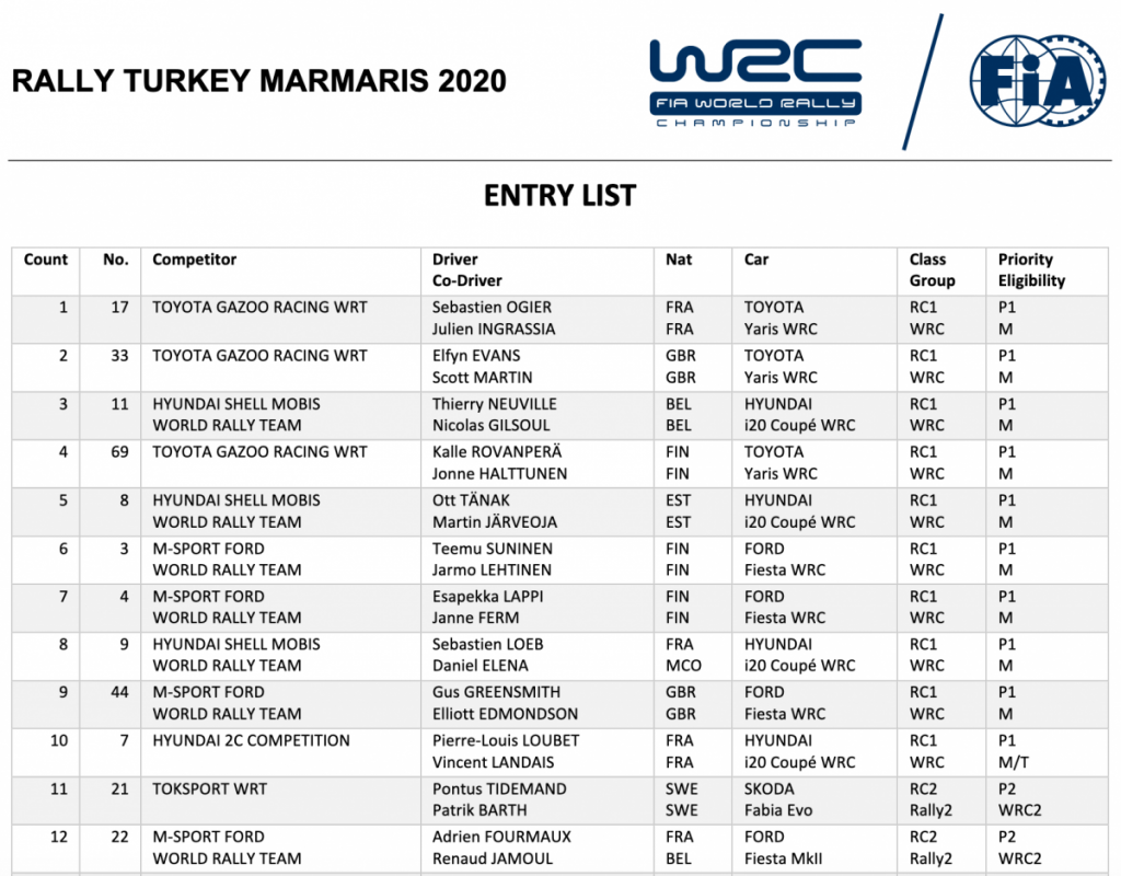 La FIA ha publicado la lista de inscritos de la quinta cita del Campeonato del Mundo de Rallys, el Rally de Turquía, que cuenta con un total de 26 equipos inscritos, con 10 unidades WRC.