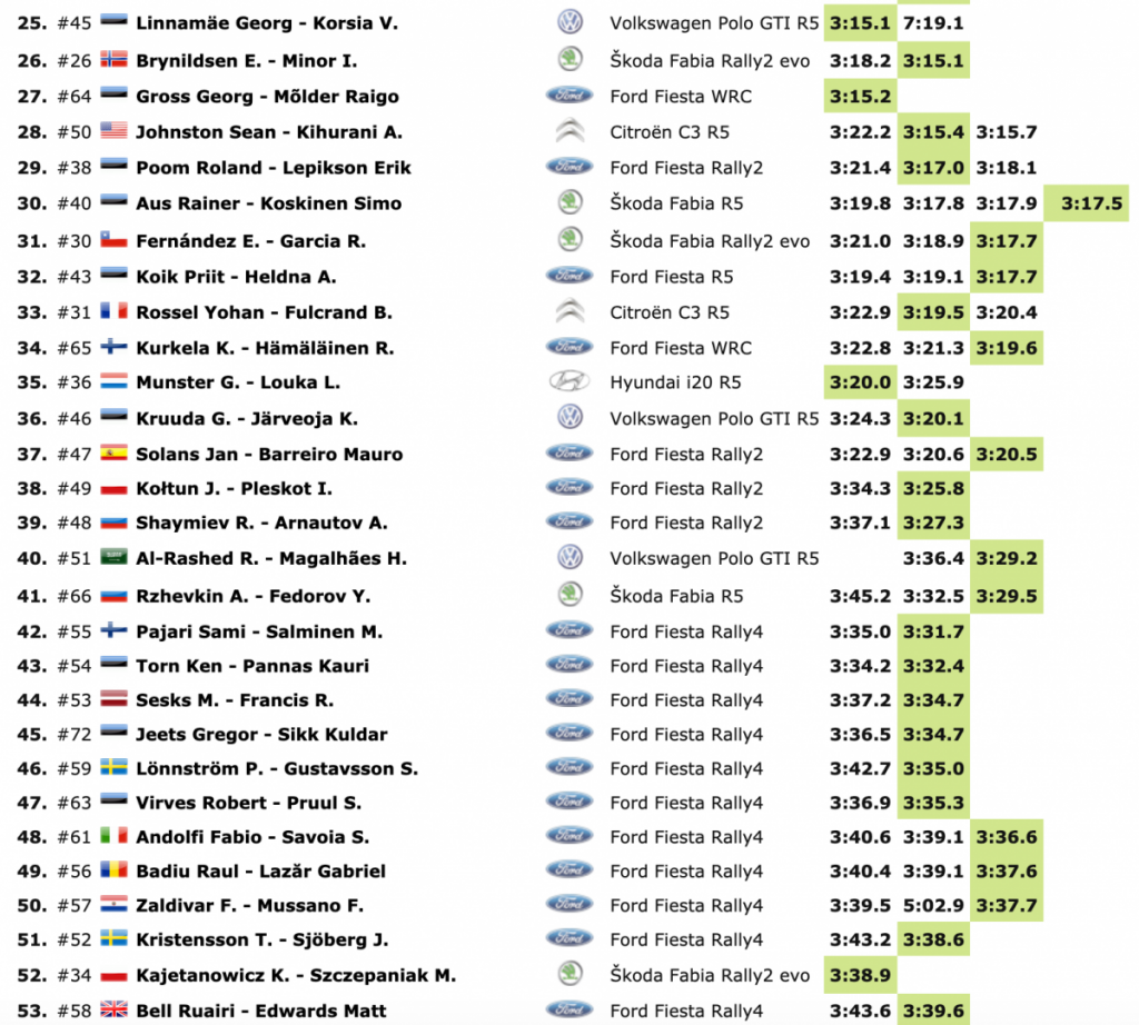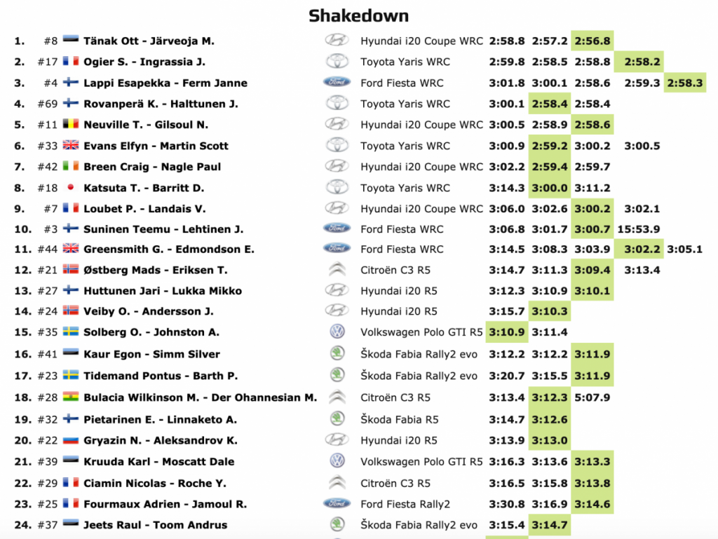 El tiempo del estonio confirmó su condición de favorito previo a esta cuarta prueba del Campeonato del Mundo de Rallyes de la FIA, que visita el estado báltico por primera vez. El rallye también marca la prueba 600 del WRC desde que la serie comenzó en 1973.