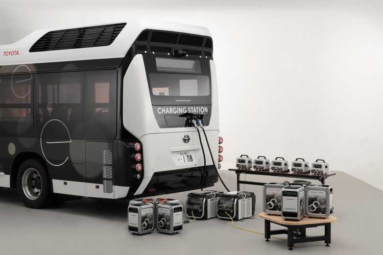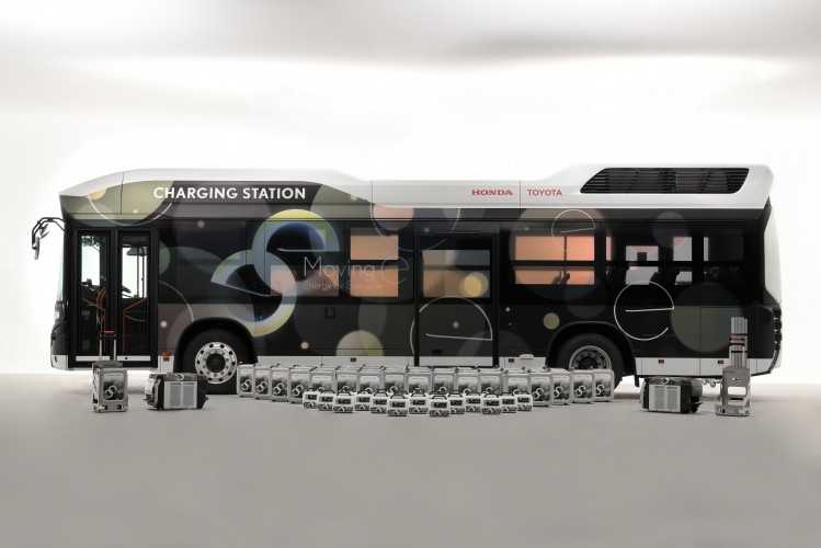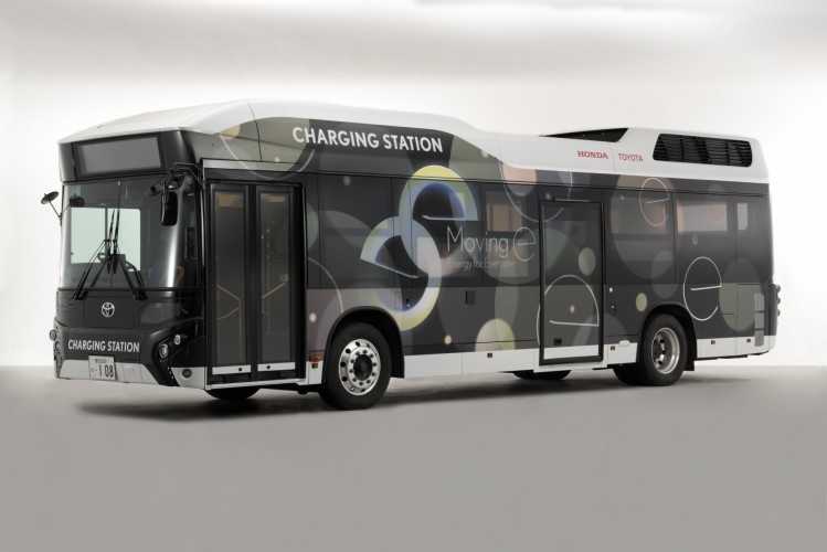 Toyota Motor Corporation (Toyota) y Honda R&D Co. Ltd. (Honda) desarrollarán un generador de electricidad portátil, denominado ‘Moving e’, consistente en un autobús de pila de combustible de hidrógeno que puede transportar una gran cantidad de hidrogeno, generadores eléctricos y baterías portátiles para poder ofrecer electricidad en cualquier momento y lugar.