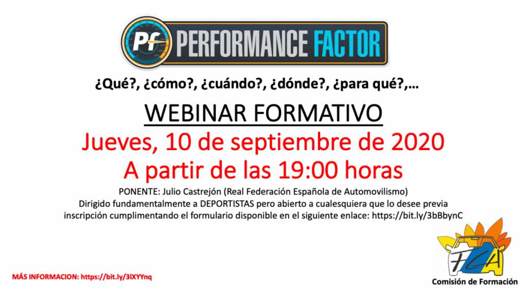 La Comisión de Formación de la Federación Canaria de Automovilismo organiza este webinar (a partir de las siete de la tarde de este jueves) en el que se conocerán todos los detalles del qué, cómo, cuándo,… del Performance Factor.