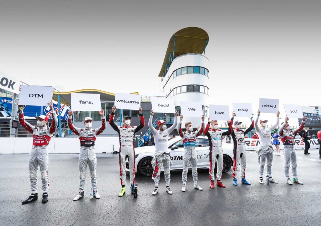 Por primera vez desde el inicio de la pandemia de la COVID-19, los aficionados pudieron disfrutar de las carreras del DTM en directo acudiendo al circuito. Los pilotos de Audi celebraron su vuelta antes del inicio de la primera carrera, colocando una pancarta delante de la tribuna principal con un mensaje emocionante: “¡Aficionados del DTM, bienvenidos de nuevo! ¡Os hemos echado de menos! »
