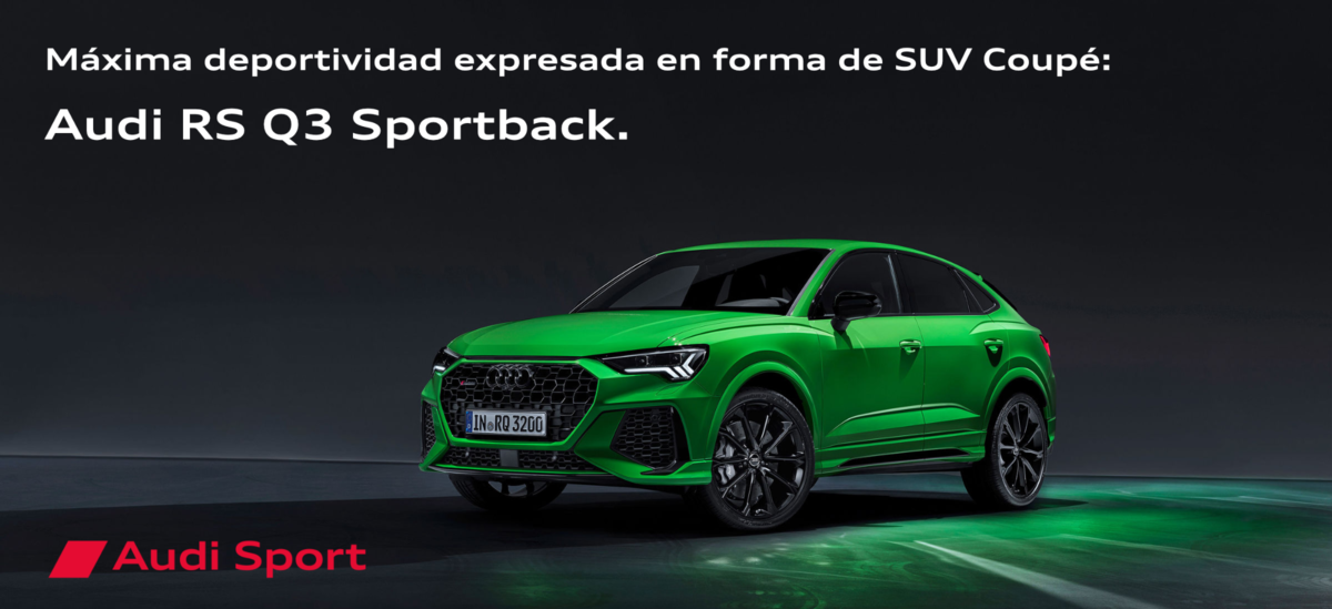 El nuevo Audi RS Q3 Sportback ofrece toda la potencia del galardonado motor 2.5 TFSI y el diseño exclusivo de un SUV coupé. Con detalles exclusivos de la familia RS tanto en el exterior como en el interior del vehículo, y una aceleración que va más allá de lo imaginable; de 0 a 100 km/h en tan solo 4,5 segundos.