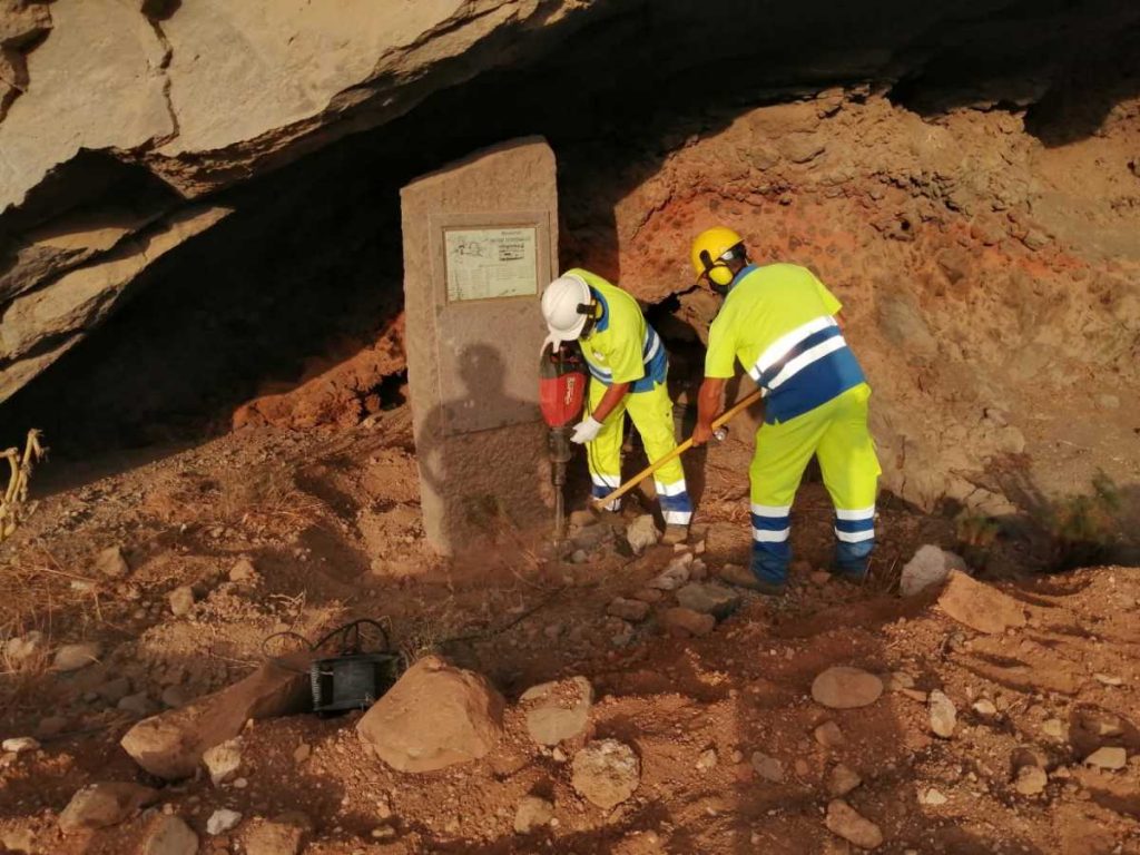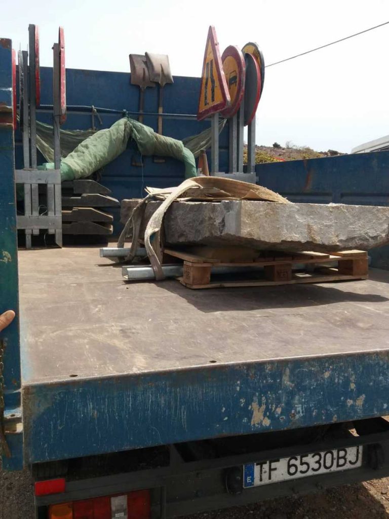 Se han responsabilizado de la extracción del monolito del fondo del barranco- lo cual no era nada fácil- y su recolocación en el lugar que hemos pactado como idóneo, que no es otro que el punto mas emblemático de «la Catedral», justo antes de la «S» de La Charca, y a ser posible antes del desarrollo del Rallysprint. Ahora mismo están en ello.