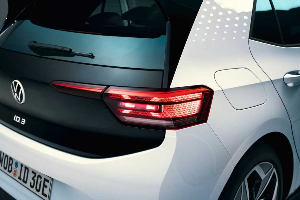 En cuanto a la parte posterior, el portón trasero de cristal resalta en tono oscuro. Entre los opcionales, no hay que olvidar el techo panorámico de cristal, que proporciona una gran sensación de amplitud gracias a la luz que deja entrar y es el mayor de toda la gama Volkswagen. Conectando con el interior del ID.3, se desprende del túnel central, ofreciendo una amplitud extraordinaria en el habitáculo. En el maletero, el revolucionario modelo de la marca alemana cuenta con una capacidad de hasta 385 litros.