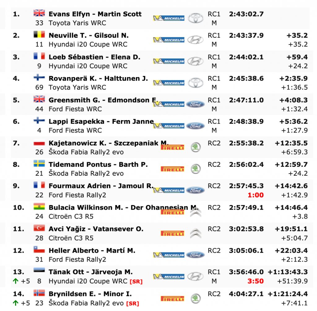 El belga Neuville fue el piloto más rápido del fin de semana, ganando siete de los 12 tramos y liderando en dos ocasiones distintas.