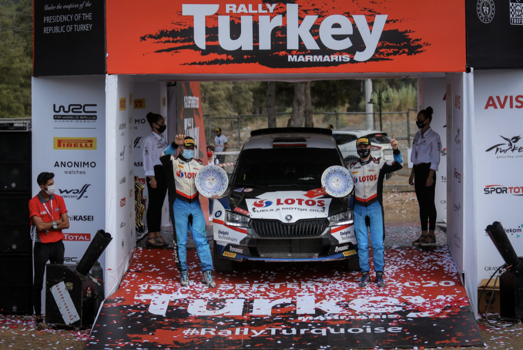¡RaceSeven lo ha vuelto a hacer! La estructura española, dirigida por Víctor Pérez, ha escrito este fin de semana en el 13º Rally de Turquía (quinta cita del World Rally Championship 2020) otra de las páginas más dulces de su ya extenso currículum mundialista. Esta vez los protagonistas no han sido otros que los hombres del Lotos Rally Team, los polacos Kajetan Kajetanowicz y Maciej Szczepaniak. Juntos, han conseguido una impecable victoria de la categoría WRC3 a bordo del Škoda Fabia Rally2 Evo gestionado por la escuadra cántabra.