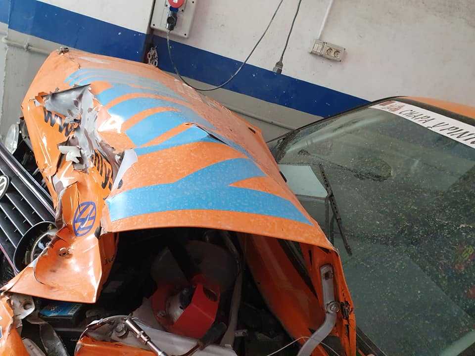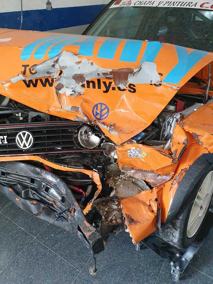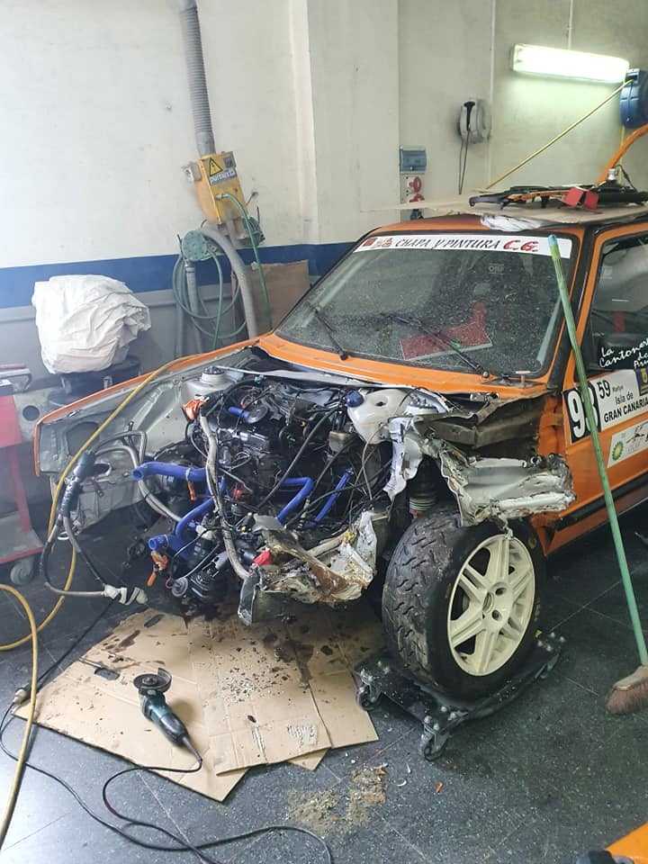 Juan Antonio Hernández y Luz Divina Carballo (VW Golf) sufrieron un aparatoso accidente en el pasado Rally Isla de Gran Canaria, motivo por el que tuvieron que ser atendidos y trasladado el piloto a un centro hospitalario. Pasado el tiempo, el coche ya está en proceso de arreglo para intentar volver cuanto antes a la competición.