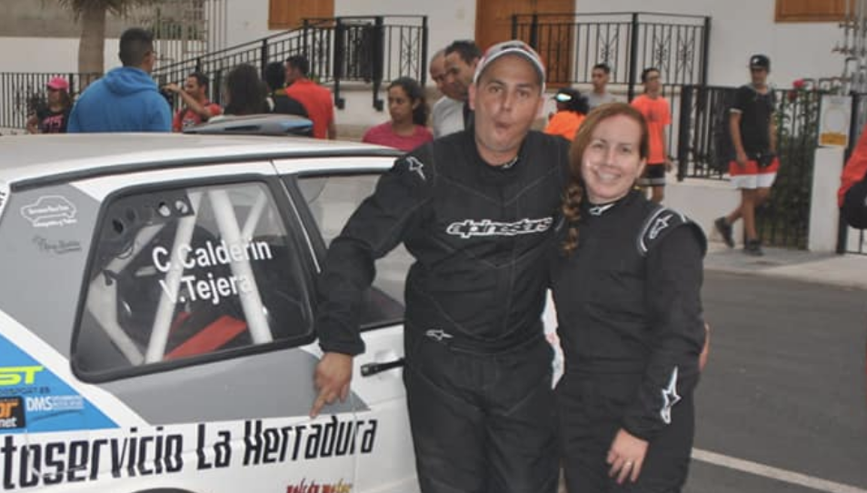 Los grancanarios Cristian Calderín y Verónica Tejera acuden a la isla de Tenerife con su VW Golf GTI para tomar parte en la I Prueba de Velocidad en Tierra Arico.