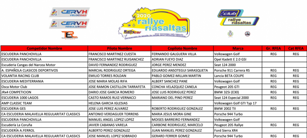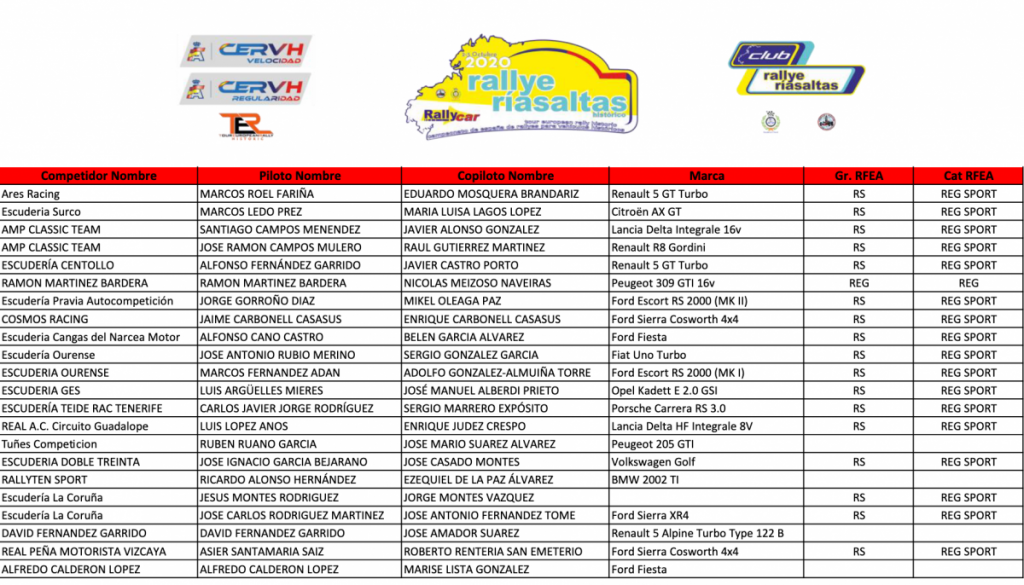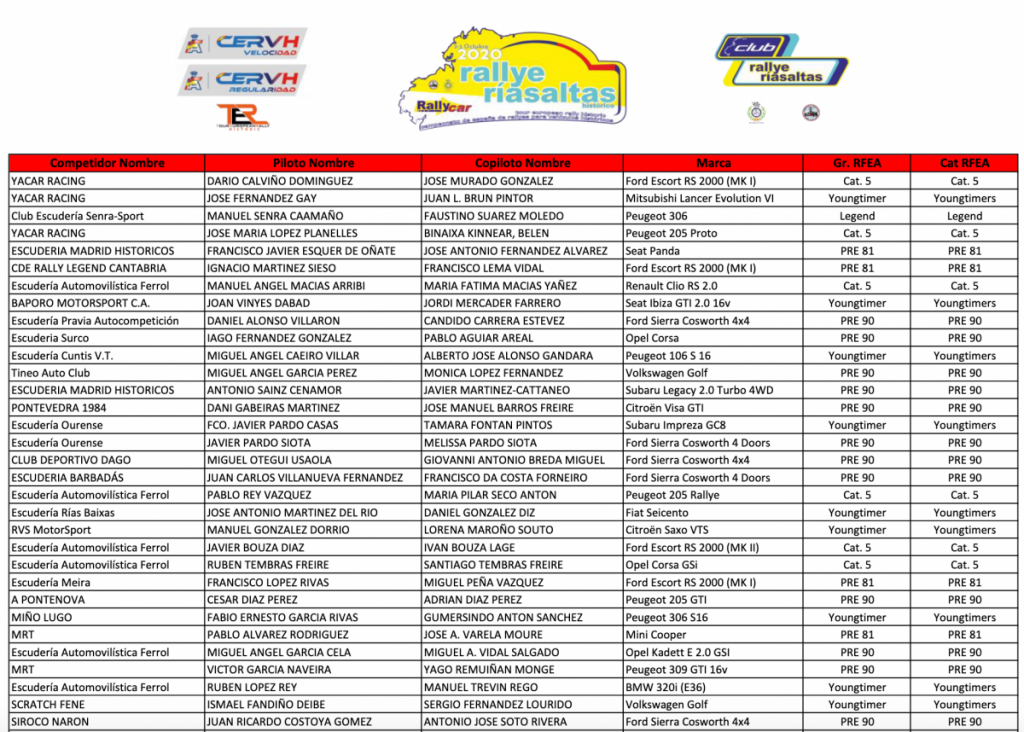 Completado el plazo de inscripción para la primera prueba de la temporada en el Campeonato de España de Rallyes para Vehículos Históricos (CERVH), las cifras vuelven a demostrar que el Rallye Rías Altas sigue siendo uno de los favoritos dentro del certamen.