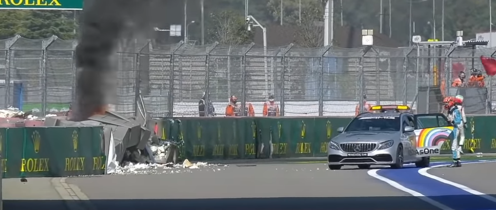 Espectacular y peligroso choque entre Jack Aitken y Luca Ghiotto durante la carrera de velocidad de la Fórmula 2, en la vuelta 7, lo que propició la presencia de la bandera roja. Ambos conductores están bien y salieron inmediatamente de sus monoplazas.