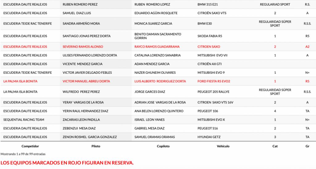 Víctor Abreu – Luis Alberto Rodríguez (Ford Fiesta R5), segundos del Rallysprint Atogo, figuran como reservas.