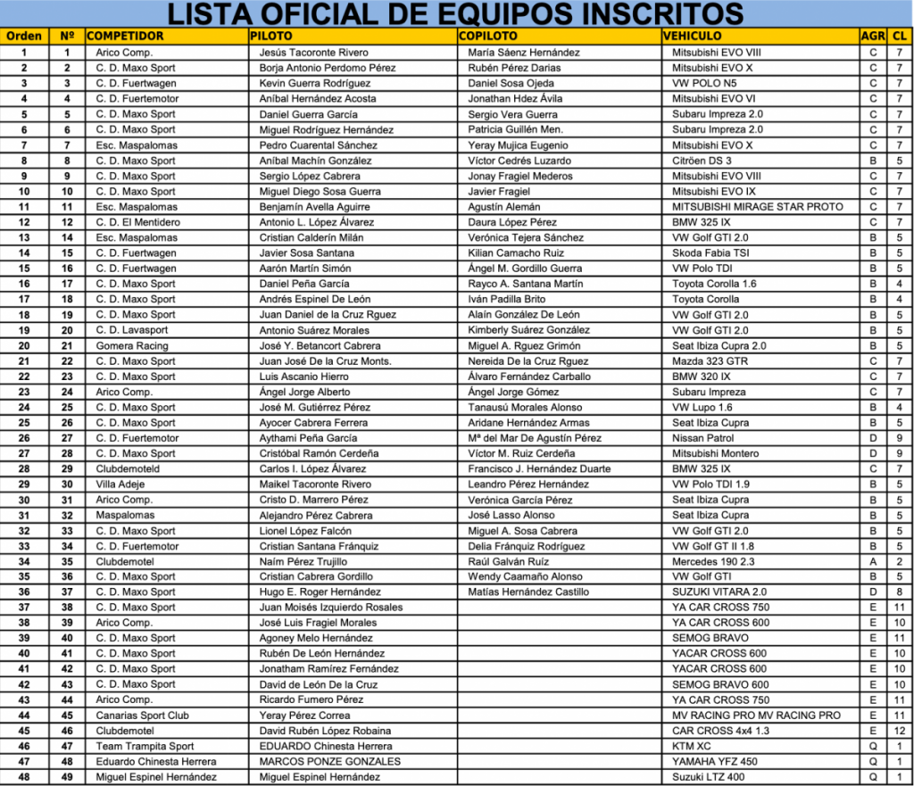 Publicamos la lista provisional de inscritos del V Slalom La Piconera – Morro Francisco (Fuerteventura).