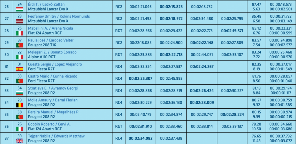 Los rusos Alexey Lukyanuk y Dmitriy Eremeev (Citroën C3 R5) marcaron un 1:59.215, el tercer mejor crono, a 1.965 del primer puesto y a 1.688 del segundo.