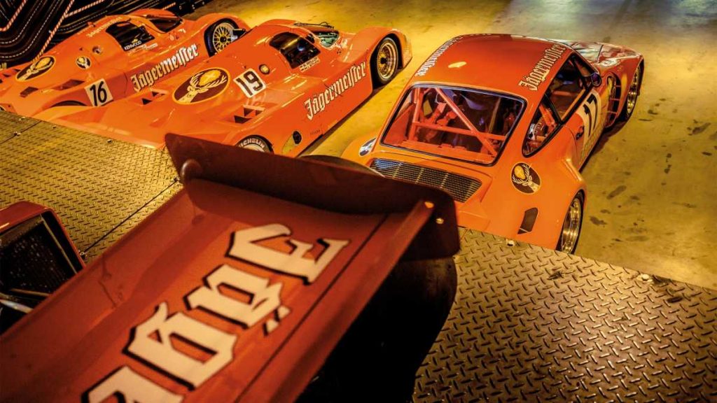 Eckhard Schimpf colecciona los coches de carreras que ha conducido y aquellos que llevan, gracias a él, la conocida decoración naranja de Jägermeister. Su garaje es un auténtico viaje en el tiempo hacia épocas doradas de la competición.