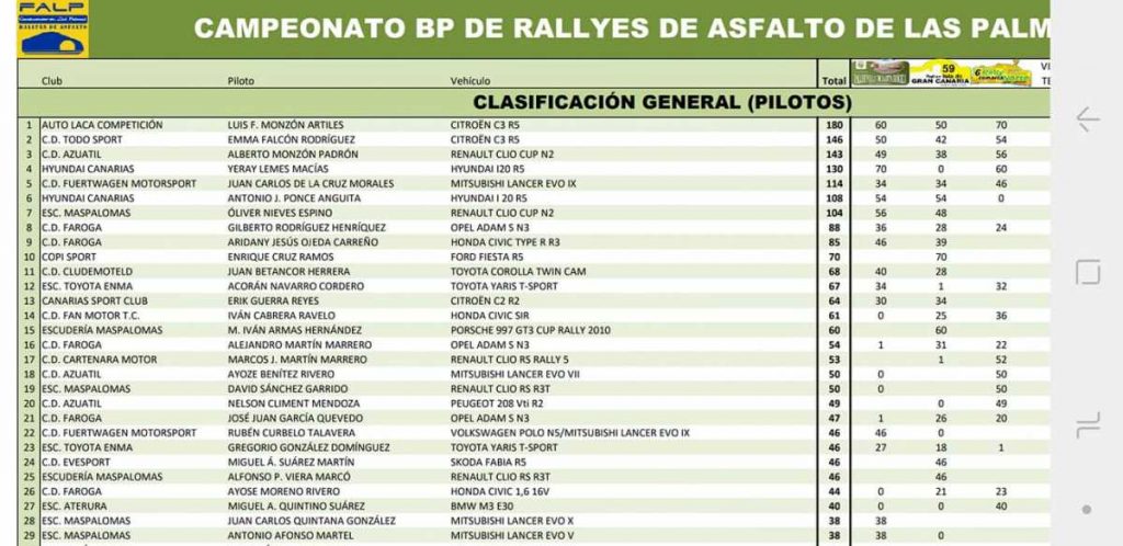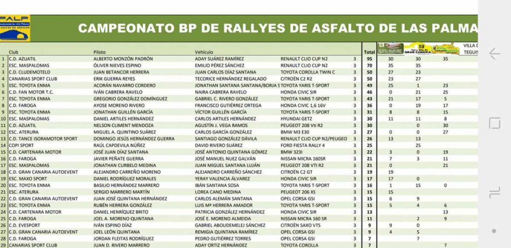 El séptimo puesto de Alberto Monzón y Aday Suárez (Renault Clio Cup) logrado en el Rally Comarca Norte de Gran Canaria les sitúa terceros del Campeonato de Las Palmas de Rallys de Asfalto, algo inesperado ante el alto nivel de coches y pilotos existente.
