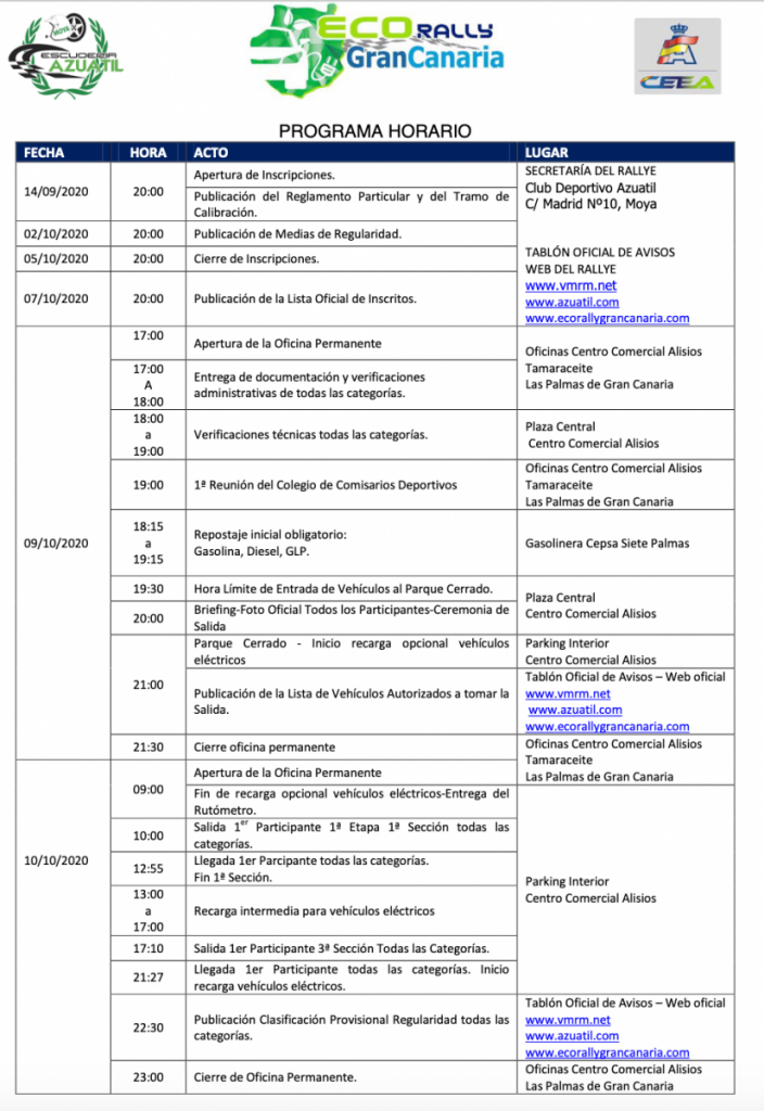 El CD. Azuatil está más que satisfecho con la respuesta de los equipos participantes en esta segunda edición del Eco-Rally Gran Canaria 2020 (9 al 11 de octubre), que contará con una lista de 27 equipos con sus correspondientes vehículos de energías alternativas, 17 unidades exclusivamente eléctricos y 10 con tecnología híbrida, que se suman a la corriente de la electrificación del automóvil del futuro.