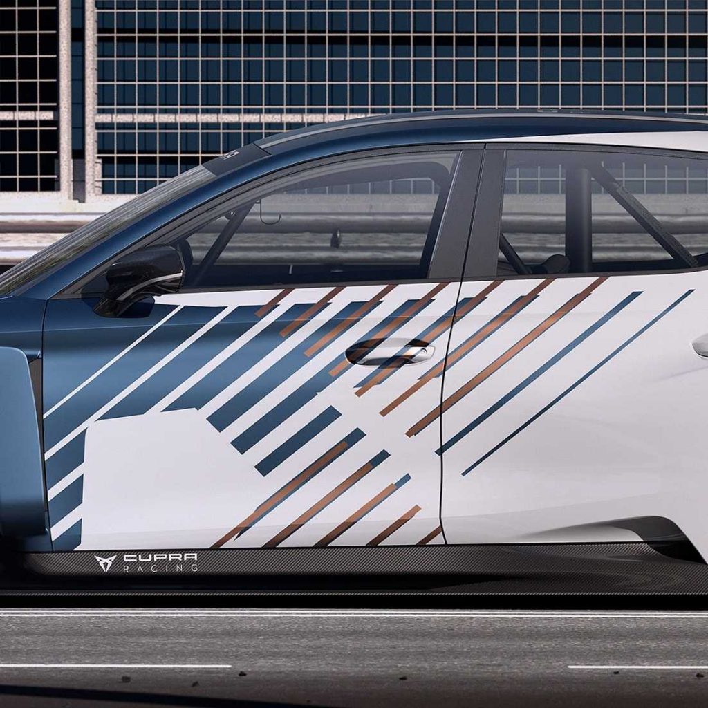 Continúa Marta Renú: “El siguiente paso era pensar quién podía ser mi cliente, creí que la mejor forma de entrar en este mundo era buscar el foco de la innovación y vi que eso lo ofrecían las carreras de turismos eléctricos. Seat ya había sido campeona del mundo en TCR y ahora quiere lograrlo también con la marca Cupra en la modalidad eléctrica. De este modo, con mi teórico cliente bien claro así como también el piloto, Jordi Gené, y el propio vehículo Cupra e-Racer como referente, me centré en un diseño único y exclusivo. Mi objetivo ha sido diseñar un mono de piloto con la técnica de sublimación, que definiera el nuevo estilo de competición puramente eléctrico de Cupra y que fuera totalmente complementario y leal con el diseño original del turismo”.