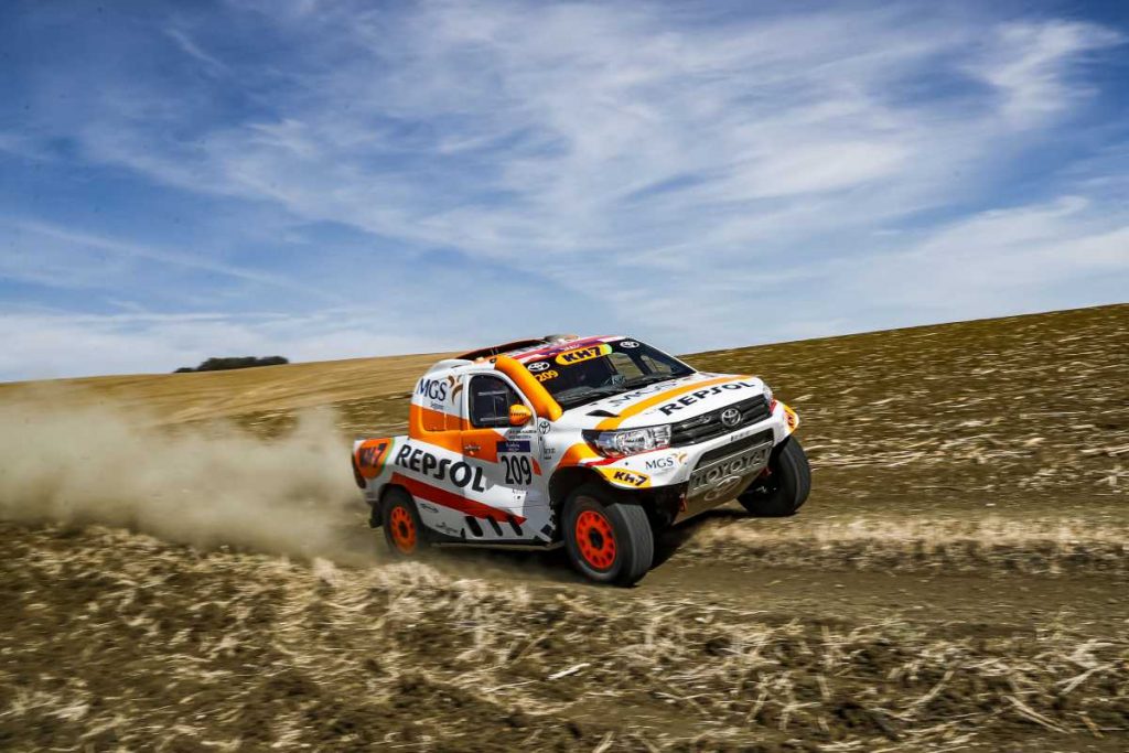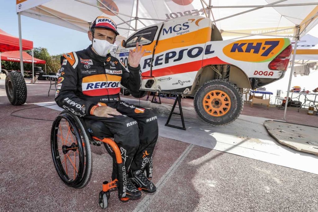 La etapa debía contar con 233 kilómetros cronometrados, pero la organización ha decidido recortarla entre los puntos kilométricos 114 y 183, por motivos de seguridad. Pese a ello, el recorrido ha sido favorable a las prestaciones del Toyota Hilux Overdrive con los mandos adaptados en el volante que pilota Isidre Esteve por primera vez en competición.