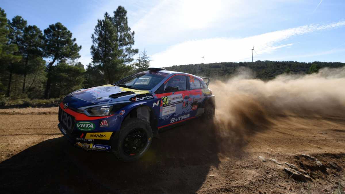A pesar de que se dañó la barra antivuelco al inicio, el del Hyundai i20 R5 se colocó en el primer lugar cuando Solberg sufrió un pinchazo durante la segunda pasada por el tramo de Coiluna – Loelle el sábado por la mañana.
