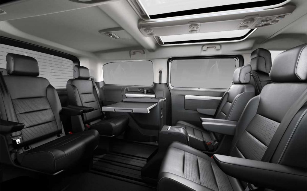 El Citroën SpaceTourer Business Lounge se convierte en una auténtica oficina móvil, con la comodidad de un salón sobre ruedas. Pensado como un espacio de trabajo o de descanso, dispone, en la segunda fila, de asientos individuales de cuero que pueden situarse de espaldas a la marcha y de una mesita deslizante abatible. Sus cristales están sobretintados para garantizar la confidencialidad.
