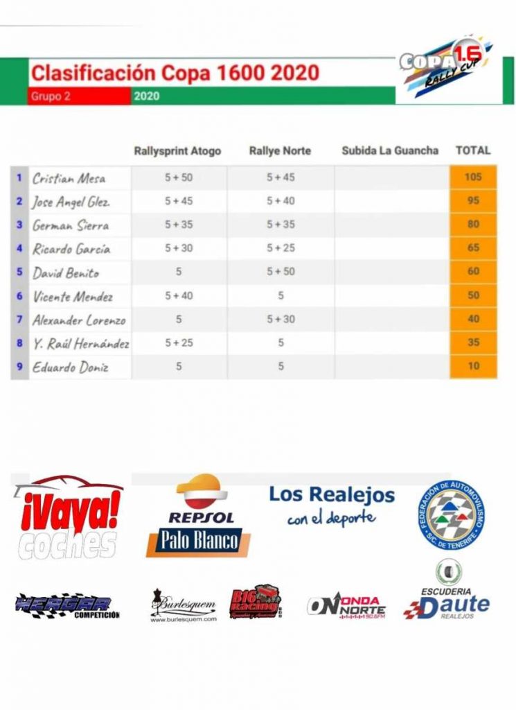 Un Rallye complejo, donde pasó casi de todo, pero que ya es historia y ya con el objetivo y la miras puestas en la próxima Subida a La Guancha, que dará fin a la Copa 1600 2020.