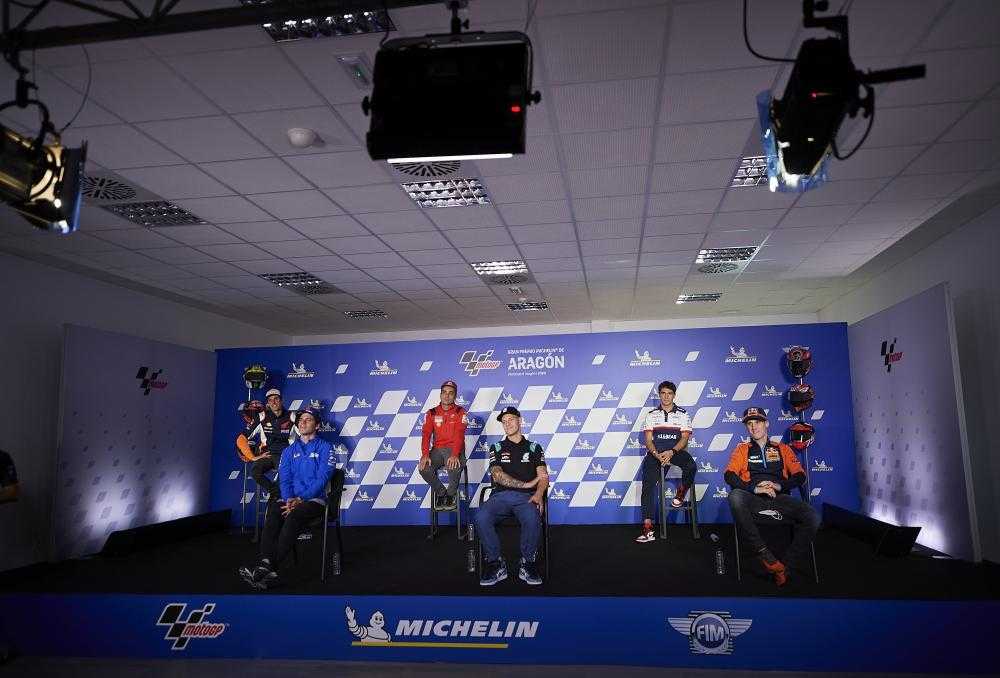 Como preludio al inicio de la acción del Gran Premio Michelin de Aragón, esta tarde se ha celebrado la rueda de prensa oficial en la que han participado algunos de los principales aspirantes a alzarse con el título de campeón de MotoGP este 2020: Fabio Quartararo, Joan Mir, Pol Espargaró, Danilo Petrucci, Alex Márquez y Albert Arenas, actual líder de Moto3™.