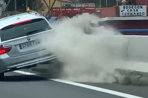Un usuario de la vía observa lo peligroso de la conducción del piloto de un BMW gris y decide llamar a las autoridades para que intervengan puesto que está poniendo en serio peligro la integridad de otros vehículos, llegando a golpear a uno de los muros exteriores de la vía, pudiendo llegar a volcar, algo que, por fortuna, no ocurrió.
