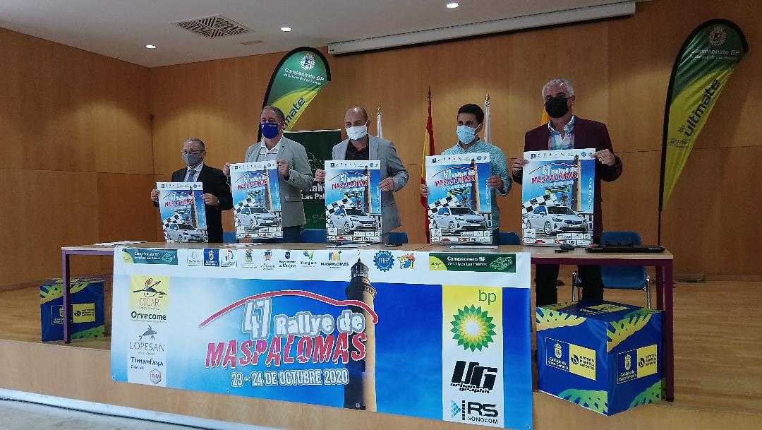 La antesala del rallye tuvo lugar con su presentación oficial en el Centro Cultural del Mayor en San Fernando, que contó con la asistencia del consejero y presidente del Patronato de Turismo del Cabildo de Gran Canaria, Carlos Álamo, junto a su homónimo en Deportes, Francisco Castellano, también presidente del Instituto Insular de Deporte. Por el ayuntamiento anfitrión estuvo Samuel Henríquez, concejal de Deportes de San Bartolomé de Tirajana. Por parte de la FALP, su presidente Miguel Angel Domínguez y por la Escudería Maspalomas organizadora del rallye, José Víctor Rodríguez, que se encargó de repasar los detalles organizativos de esta especial edición, cuyas medidas anti-covid seguirán siendo muy estrictas. Aunque la declaración «Sin Público» ya no es necesaria al pasar a semáforo verde esta isla, se continuará pidiendo la ausencia de público en los tramos y actos del rallye y se actuará contra las aglomeraciones de personas en los puntos claves del recorrido.