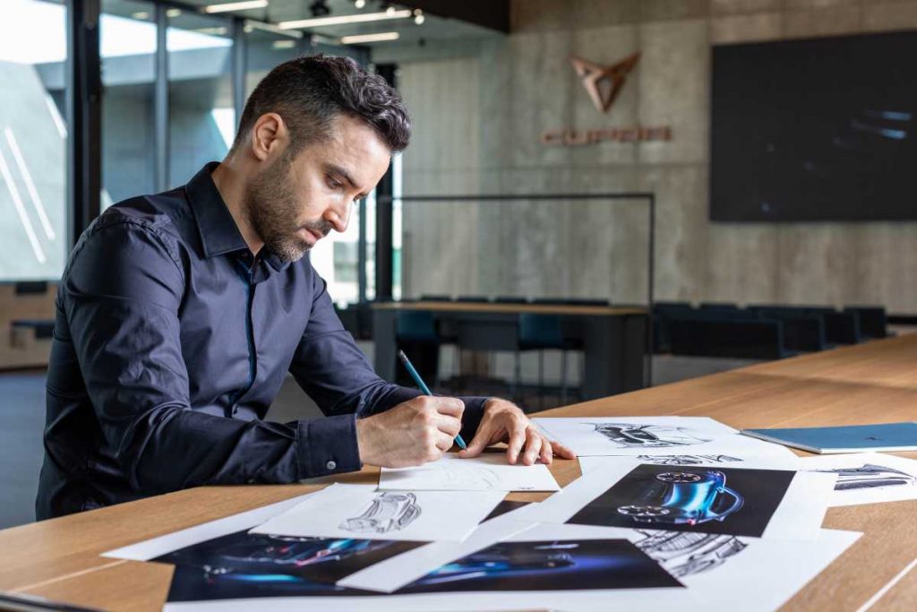 – Sus volúmenes. Uno de los puntos clave por los que se han incrementado las ventas de estos modelos era la necesidad de tener más espacio y una conducción más elevada, sin que esto supusiera restar en diseño y deportividad. “Las proporciones son muy importantes en el diseño de todos los vehículos, pero en este eran clave para lograr el efecto que buscábamos”. Alberto Torrecillas, diseñador del equipo de diseño exterior de CUPRA, lo tuvo claro desde el inicio del proyecto. Había que encontrar el punto exacto para que el primer modelo de la marca se diferenciara del resto. “Tenía que ser algo único, sofisticado. El CUPRA Formentor se caracteriza por tener unas proporciones musculadas y a la vez atléticas. Aún con sus amplias dimensiones es ligero y eso se ha conseguido gracias a un diseño muy trabajado que fue un reto para todos”, explica Torrecillas.