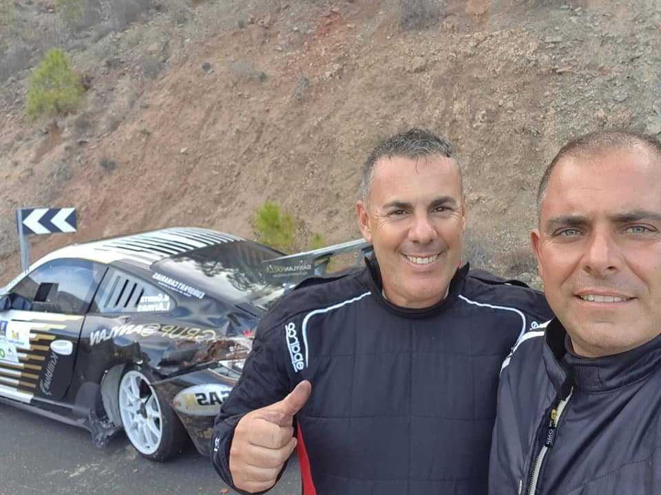 Iván Armas y Tino Guerra (Porsche 997 GT3 2010) empezaron liderando el Rally de Maspalomas y terminaron el primer bucle como líderes, pero a partir del cuarto tramo perdían este puesto de privilegio en favor de los ganadores finales, Yeray Lemes y Rogelio Peñate (Hyundai i20 R5). Sin opciones de poder recuperar el liderato se tuvieron que defender del ataque de Toñi Ponce y Dani Rosario (Hyundai i20 R5), que tramo a tramo les fueron recortando la renta, pero en el penúltimo tramo, pasadas la meta, los del Porsche tenían que despedirse con un toque en su montura.