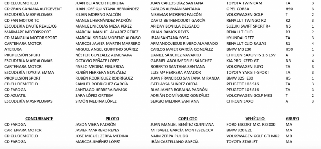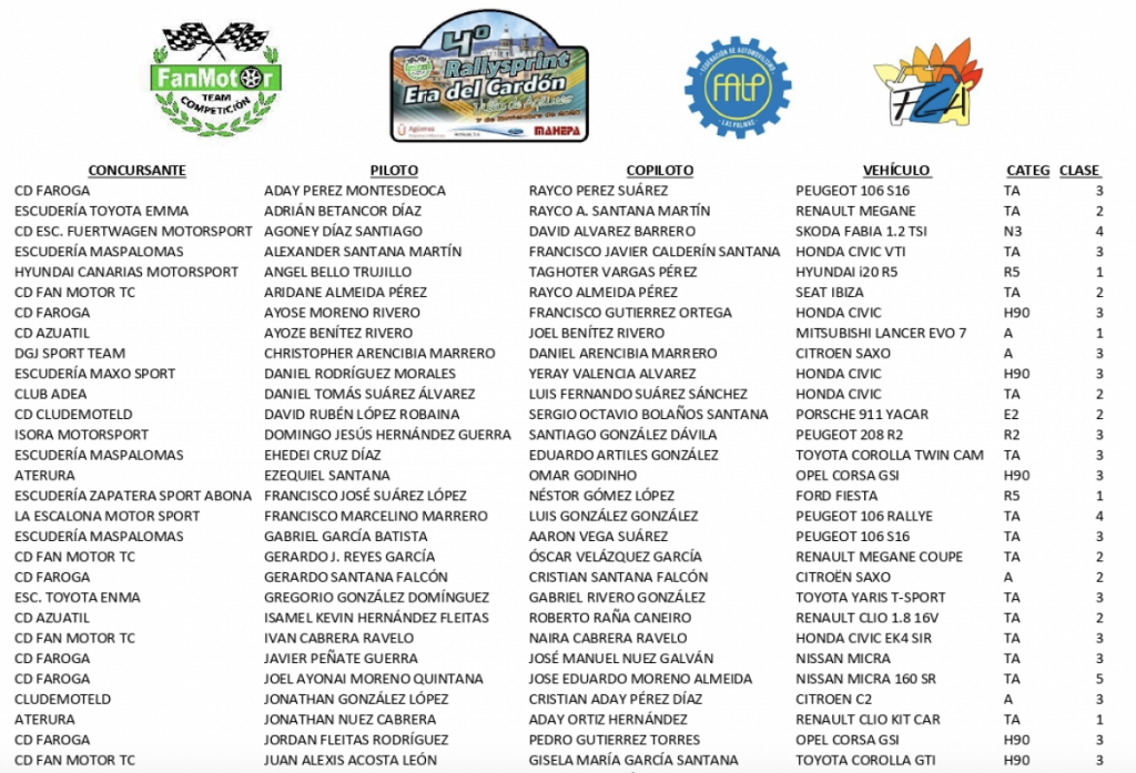 Publicamos la lista provisional de inscritos del 4º Rallysprint Era del Cardón-Villa de Agüimes (Gran Canaria).