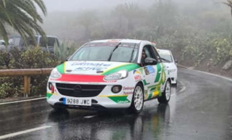El piloto tinerfeño Leandro Pérez, que a pesar de finalizar cuarto en la Subida Alajeró en la isla de La Gomera, su Opel Adam quedó dañado al tocar justo cuando pasaba la línea de meta. Lo han podido arreglar y estará en la rampa de salida del Rally Isla de Tenerife.