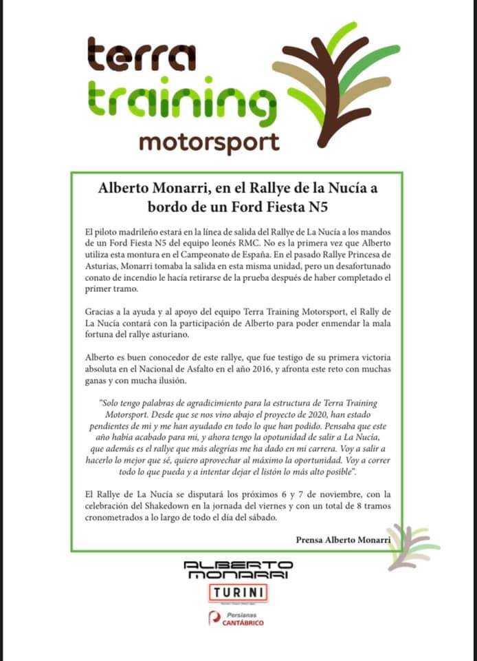 El piloto madrileño Alberto Monarri ha confirmado en sus redes sociales que estará en La Nucía con un Ford Fiesta N5.