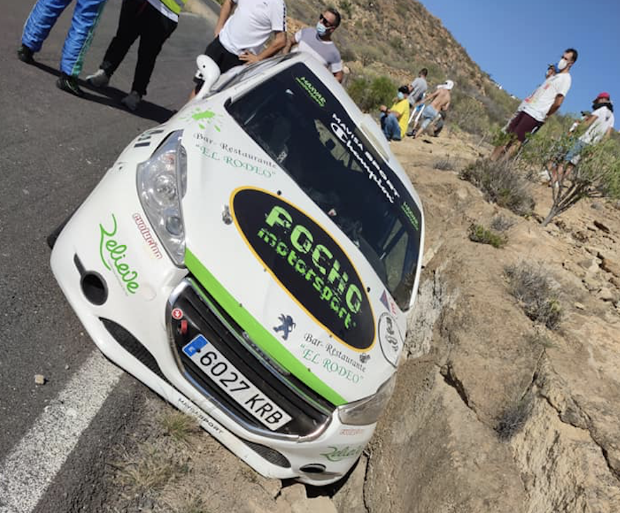 David Luis García y José Agustín de La Torre (Peugeot 208 R2) tuvieron que abandonar en el Rally Isla de Tenerife debido a una salida de carretera.