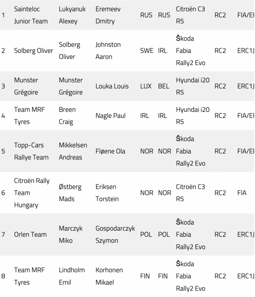 Además de los habituales cabezas de cartel del Campeonato de Europa (principalmente Lukyanuk, Solberg y Breen), estarán presentes nombres internacionales como Andreas Mikkelsen, Mads Ostberg y Nikolay Gryazin.