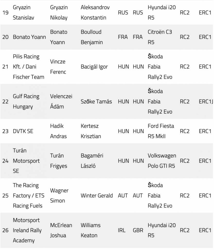 Yoann Bonato, después de su excelente debut en Fafe, donde fue segundo y optando a la victoria en la última especial, también estará presente e intentará unirse a la lucha por un puesto de podio. El local Turan Frigyes también estará presente en una enorme lista de favoritos.