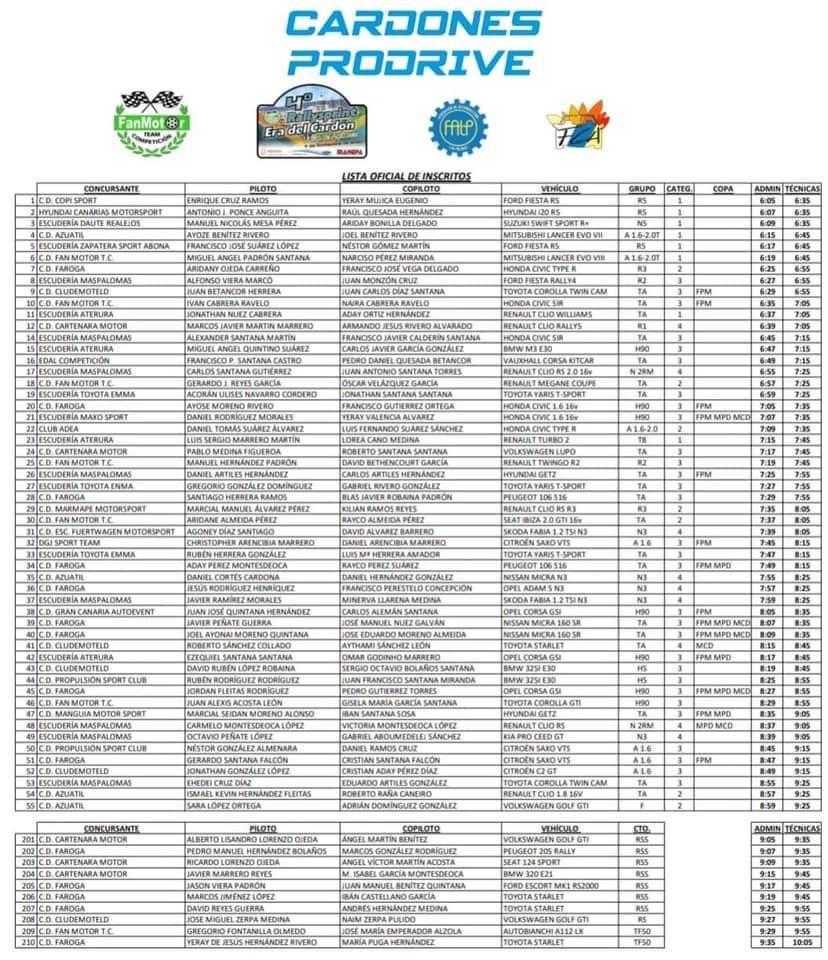 Publicamos la lista de inscritos del Rallysprint Era del Cardón, cita del Campeonato de Canarias de Rallysprint, siendo el número 1 para Enrique Cruz (Ford Fiesta R5).