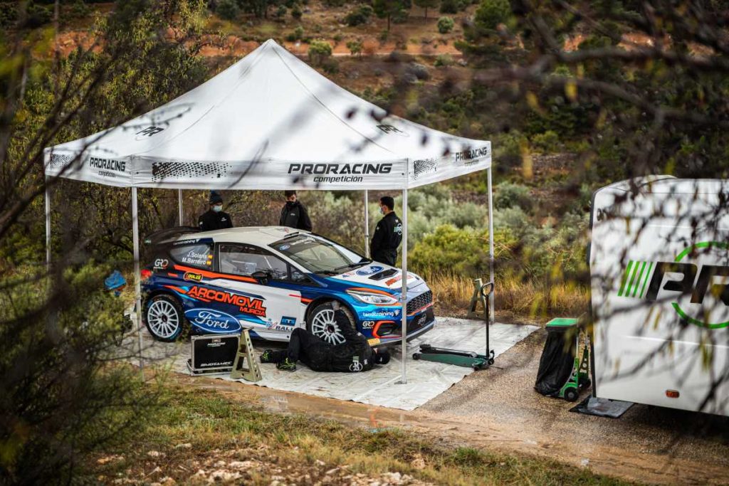 Los mecánicos de ProRacing Competición han trabajado intensamente en la sede del equipo durante los últimos días, transformando por completo la configuración de tierra con la que compitió el coche el pasado fin de semana para poder desplazarlo inmediatamente hasta las carreteras levantinas, donde Jan Solans ha efectuado un test preparatorio bajo la dirección técnica de Álvaro Velasco, y copilotado además por la fundadora de la estructura cántabra, Isabel Ortiz.