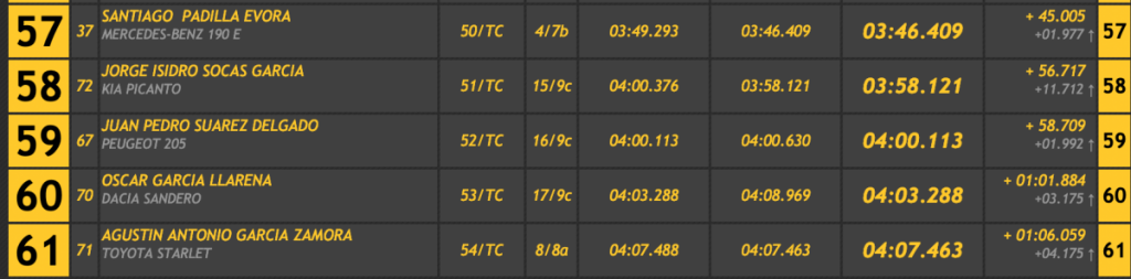 Entre las barquetas José Manuel González (BRC BR 53) superó en 12.740 a su único rival, José Luis Rodríguez (Silver Car S3).