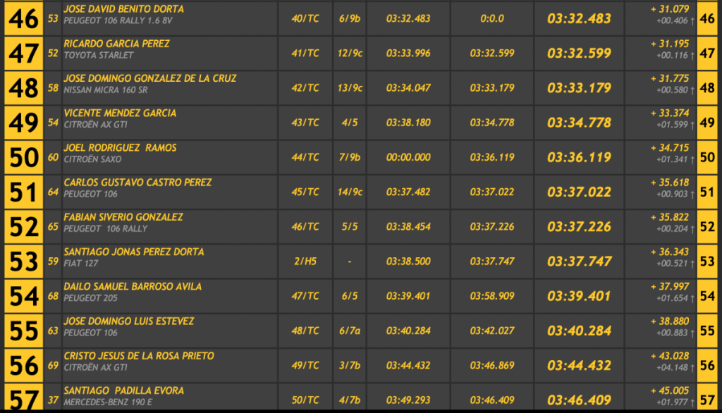 Entre las barquetas José Manuel González (BRC BR 53) superó en 12.740 a su único rival, José Luis Rodríguez (Silver Car S3).