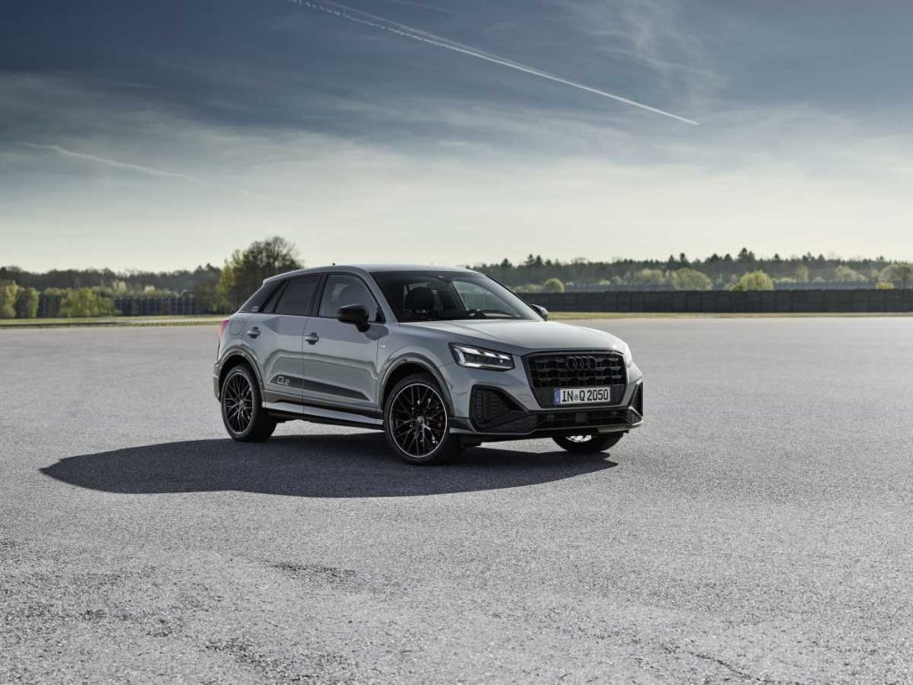 La gama de colores para la carrocería del nuevo Audi Q2 incluye cinco nuevos colores: verde Manzana (que es novedad en la marca), gris Manhattan, azul Navarra, gris Flecha y el azul Turbo. Los blade de los pilares traseros están pintados en el color de la carrocería en la versión de entrada, Edition, gris Manhattan en la versión Sport y en la versión más premium y exclusiva de Audi, S line, vienen pintados en plata Selenita. También pueden ir acabados en tonos negros, grises, plateados y en carbono, opcionalmente, a elección del cliente.