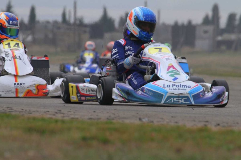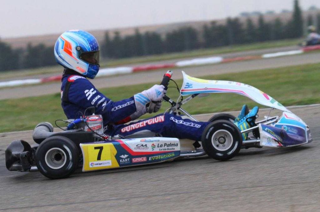 En Zuera, las sensaciones y el ritmo no eran malos, todo lo contrario. Mezclado entre los más rápidos, el piloto de los Llanos de Aridane fue quinto en la primera carrera del sábado –posteriormente recibió una penalización que le retrasó- e iba séptimo en la carrera larga, justo antes de que se subieran encima de su kart, lo que le retrasó un buen número de posiciones. Ese lance le iba a privar de luchar por el podio absoluto en términos absolutos.
