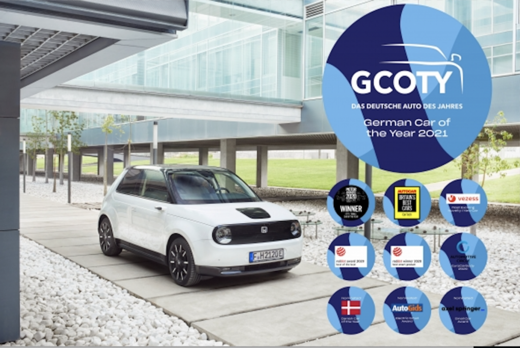 En Bélgica, el coche eléctrico urbano de Honda ha sido nominado en los premio de la revista Autogids, en la categoría de “Coche eléctrico pequeño”. Además, opta también al premio “Coche del Año en Hungría”, después de que Vezess.hu lo nombrase el año pasado el “Coche nuevo más emocionante”. El Honda e también está nominado en España en los Premios Motor Axel Springer en la categoría de “Mejor coche pequeño”, y en Italia opta a “Coche del Año” por parte de la revista Quattroruote. Mientras tanto, en Dinamarca, el Honda e ha sido preseleccionado para el título de “Coche del Año en Dinamarca” de 2021.