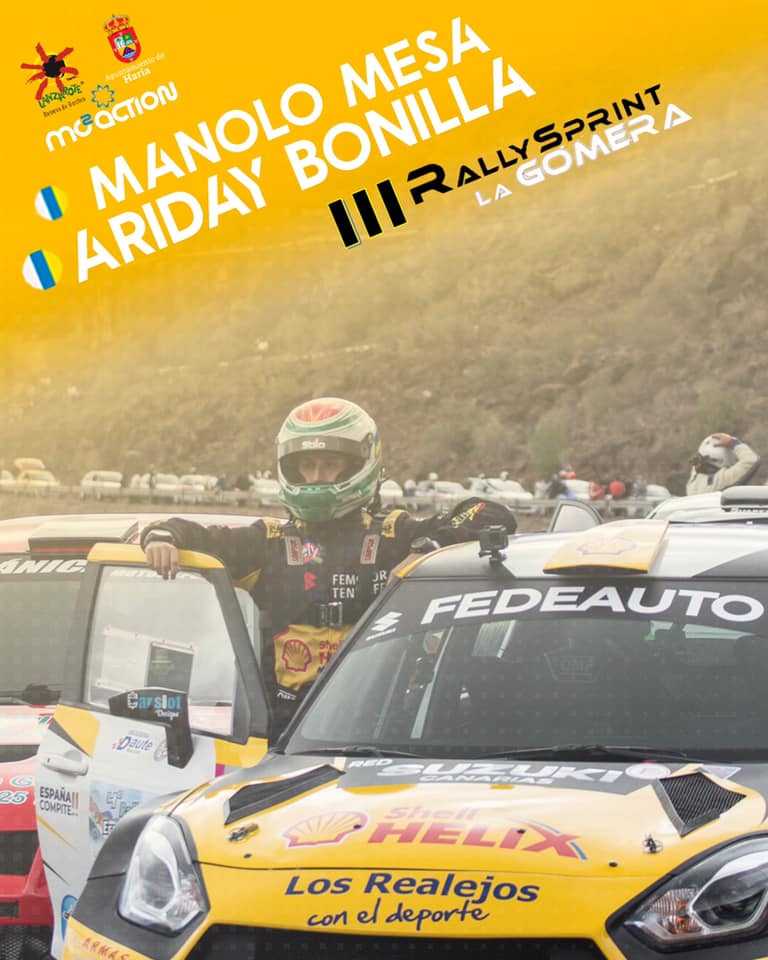 El tinerfeño Manolo Mesa y el lanzaroteño Ariday Bonilla regresan a la actividad este fin de semana con motivo de la disputa del Rallysprint La Gomera. Los del Suzuki Swift N5 son unos de los claros favoritos a ocupar uno de los primeros puestos del Campeonato de Canarias de Rallysprint.