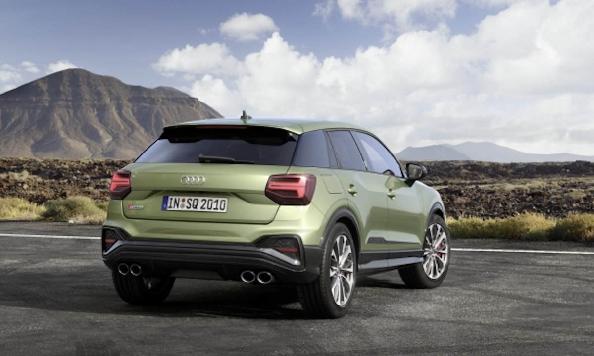 La actualización de diseño del Audi SQ2 también afecta a las carcasas de los espejos retrovisores en óptica de aluminio, los faldones laterales, el alerón del borde del techo y los blades en el pilar C. El paragolpes trasero, con motivos pentagonales, varía el patrón de diseño del faldón delantero. La inserción en el difusor enmarca cada una de las dos salidas de escape. La capacidad del maletero puede variar entre 355 y 1.000 litros, en función de la posición del respaldo de los asientos traseros.