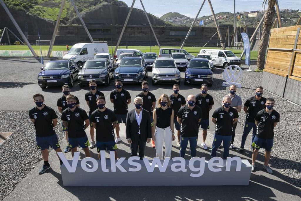 La Ciudad Deportiva de la UD Las Palmas fue el escenario donde miembros del equipo amarillo, directivos y cuerpo técnico recibieron, cumpliendo con todas las medidas de seguridad, la nueva flota Volkswagen. Esta nueva flota llega de mano de Magüi Melián, CEO del Importador Domingo Alonso y Patricio Viñayo, Director General de la UD Las Palmas.