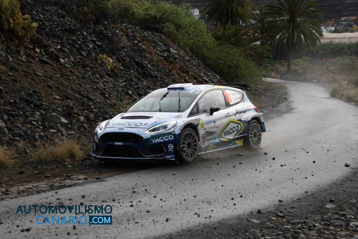 Los galos Adrien Fourmaux y Renaud Jamoul (Ford Fiesta R5 MKII) son los sorpresivos líderes del 44 Rally Islas Canarias tras la disputa de los cuatro primeros tramos cronometrados de la mañana de este sábado, los de ‘Valleseco-DISA’ (14,17 km), ‘Gáldar’ (12,4 km), ‘Moya’ (12,63 km) y ‘Arucas’ (11,85 km).