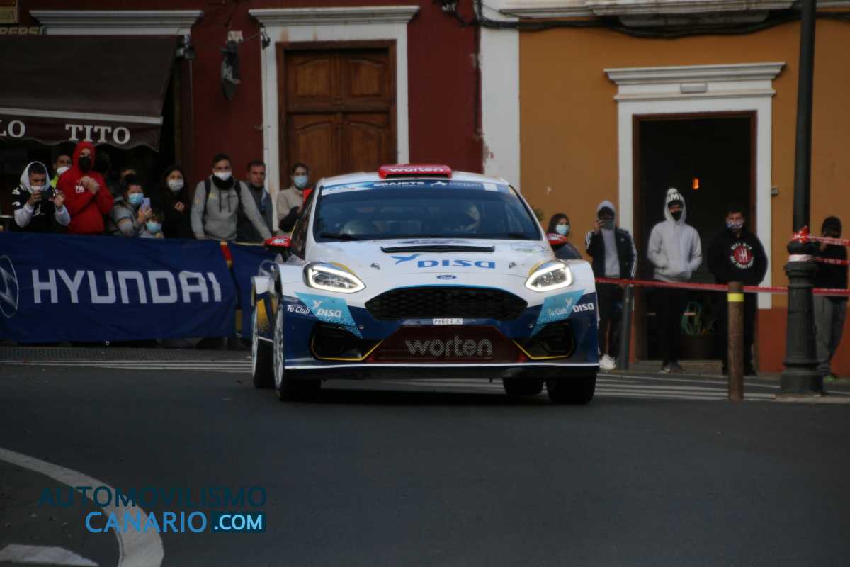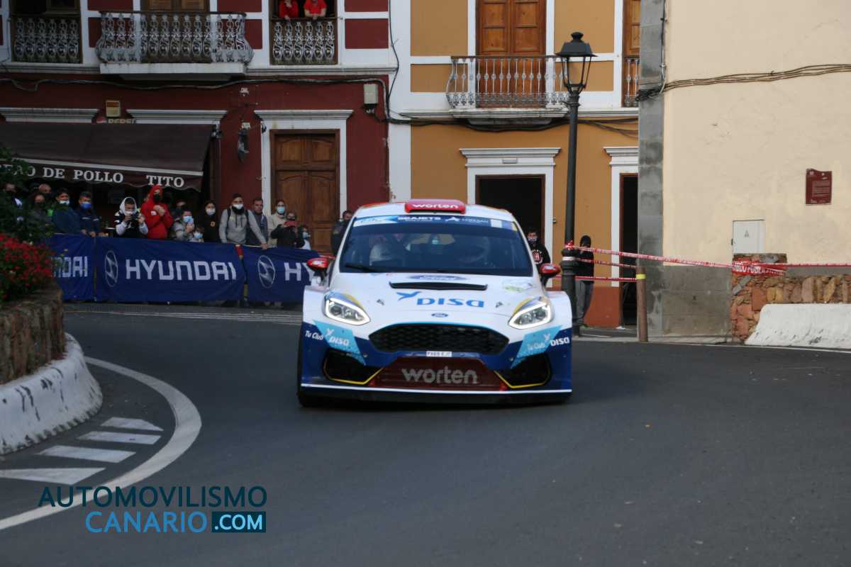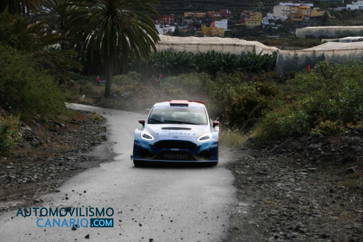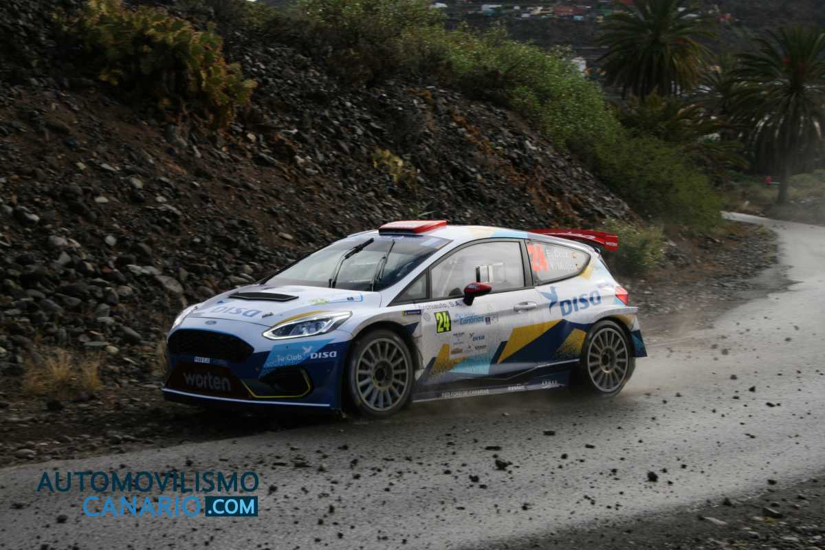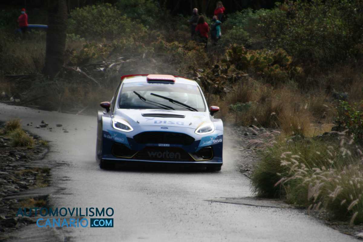 El equipo DISA Copi Sport preparó con esmero esta competición y el Ford Fiesta R5 de Archiauto llegaba en perfecto estado de revista, avalado por una fiabilidad y competitividad fuera de toda duda: “De no haber sido por el error en el ‘famoso’ Control Horario del Rallye Isla Tenerife donde penalizamos y terminamos por ello segundos, hubiésemos contado por victorias nuestras participaciones esta temporada. Por eso llegamos al Islas con la idea de sumar kilómetros y esperar algo de lío por la elección de neumáticos, un clásico ya en esta prueba… pero realmente fue caótico” comentaba Enrique Cruz. “El shakedown fue sobre seco y los reglajes que allí probamos no sirvieron de nada, porque viernes y sábado el asfalto cambiaba varias veces de estado en cada tramo, de mojado a húmedo, luego seco y de nuevo mojado. No había una monta perfecta, sino una ‘menos mala’. En la primera sección decidimos arriesgar, montando justo lo contrario al de nuestros principales rivales; sinceramente, fue un desastre. Sufrimos muchísimo para mantener el coche en la trayectoria y arriesgar más de la cuenta era innecesario” detallaba el piloto de DISA Copi Sport.