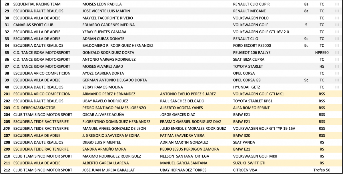 La categoría III (turismos) contará con la participación de Antonio Gorrín, Juan Luis Cruz, José Alberto Díaz, Pedro Javier Afonso, Juan Carlos Brito, Jesús Tacoronte,… y así hasta completar los 34 de la totales.